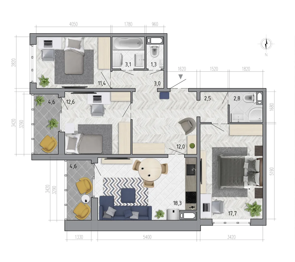 3-комнатная