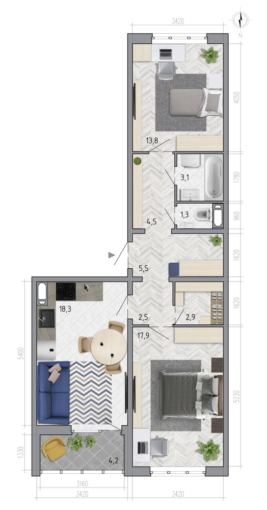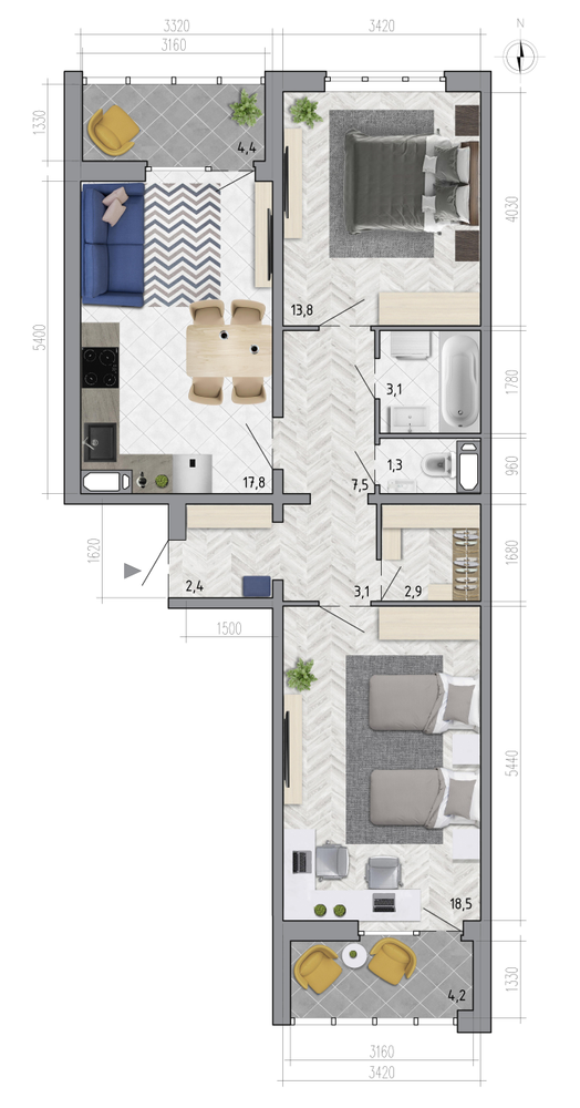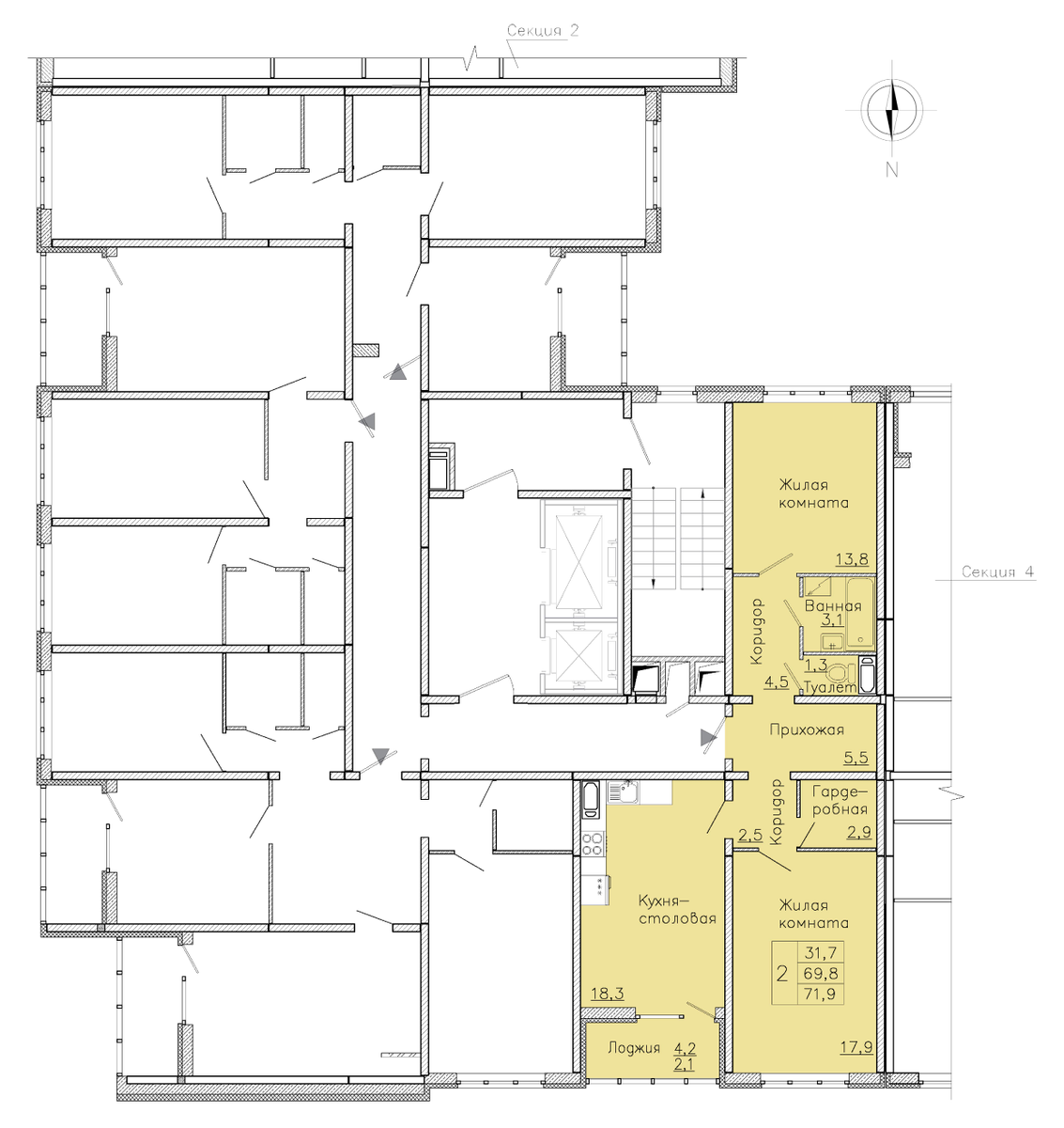 2-комнатная 71.9 м